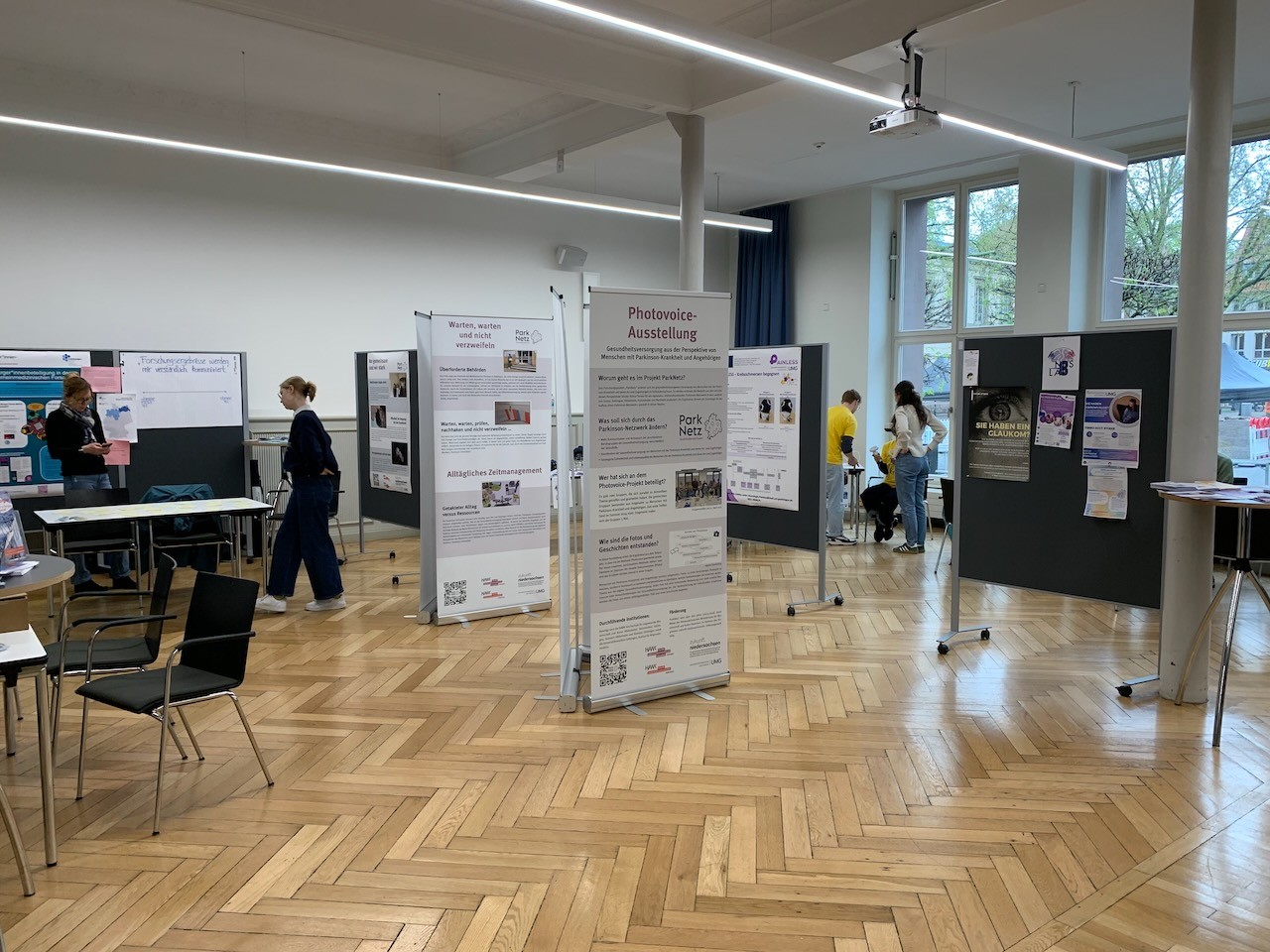The Else Kröner Fresenius Center for Optogenetic Therapies and its cooperation partners presented their thematic focus together in the Alte Mensa / Wilhelmsplatz. In addition to many highlights from basic research and outlooks into possible clinical applications, there were intensive discussions with visitors who were interested in topics such as hearing loss, deafness, optogenetic therapies, and sensory perceptions. The audiovisual art video KLANGLICHT, which aims to represent the possibility of “hearing with light” through an optical cochlear implant, captivated visitors with its pulsating light forms, flowing colors, and rhythmic dance sequences on the screen. With this, we continued our approach of making the perception of hearing with a cochlear implant accessible to everyone through an artistic representation.